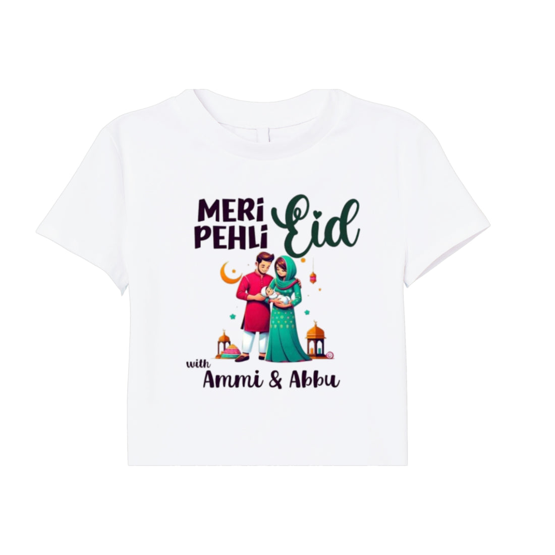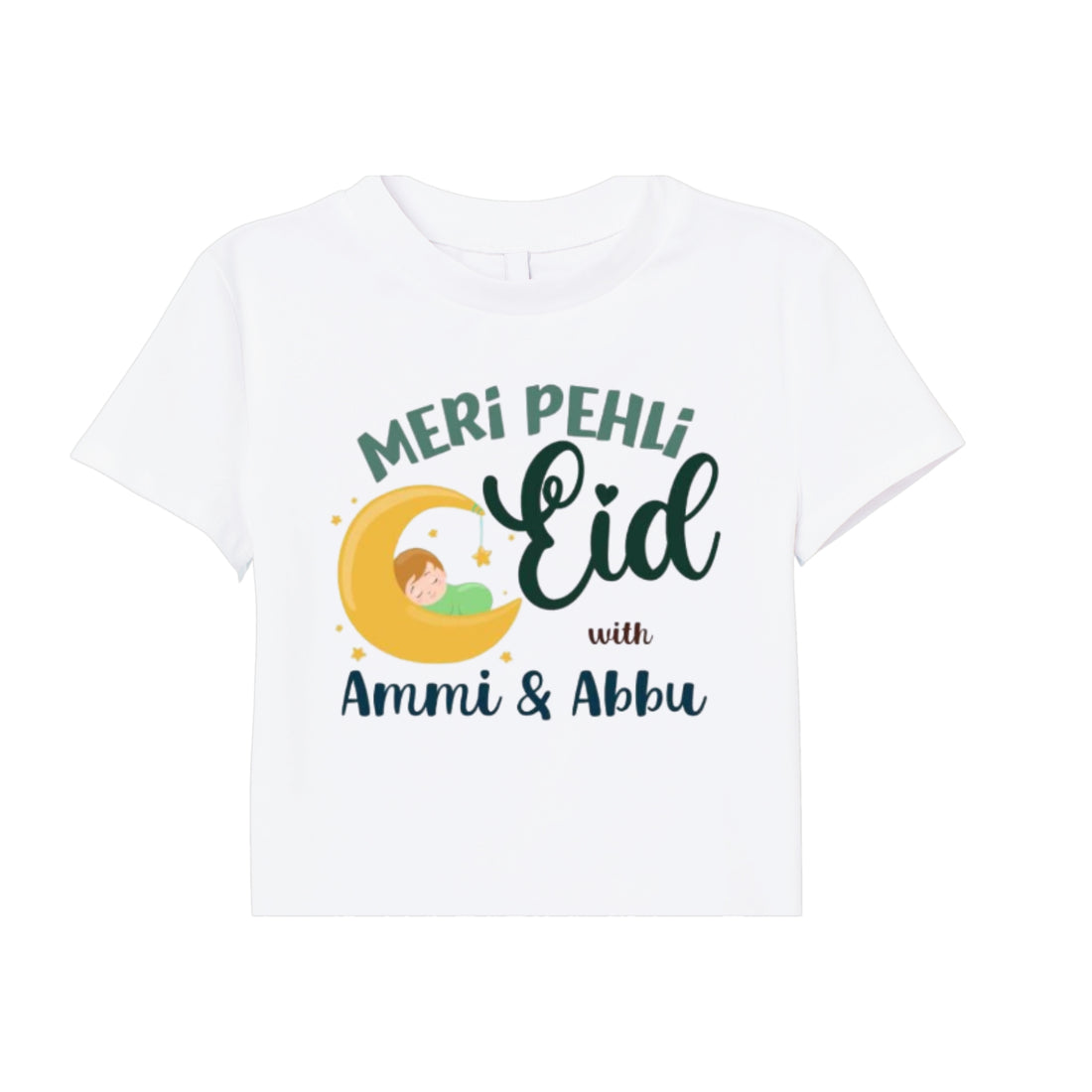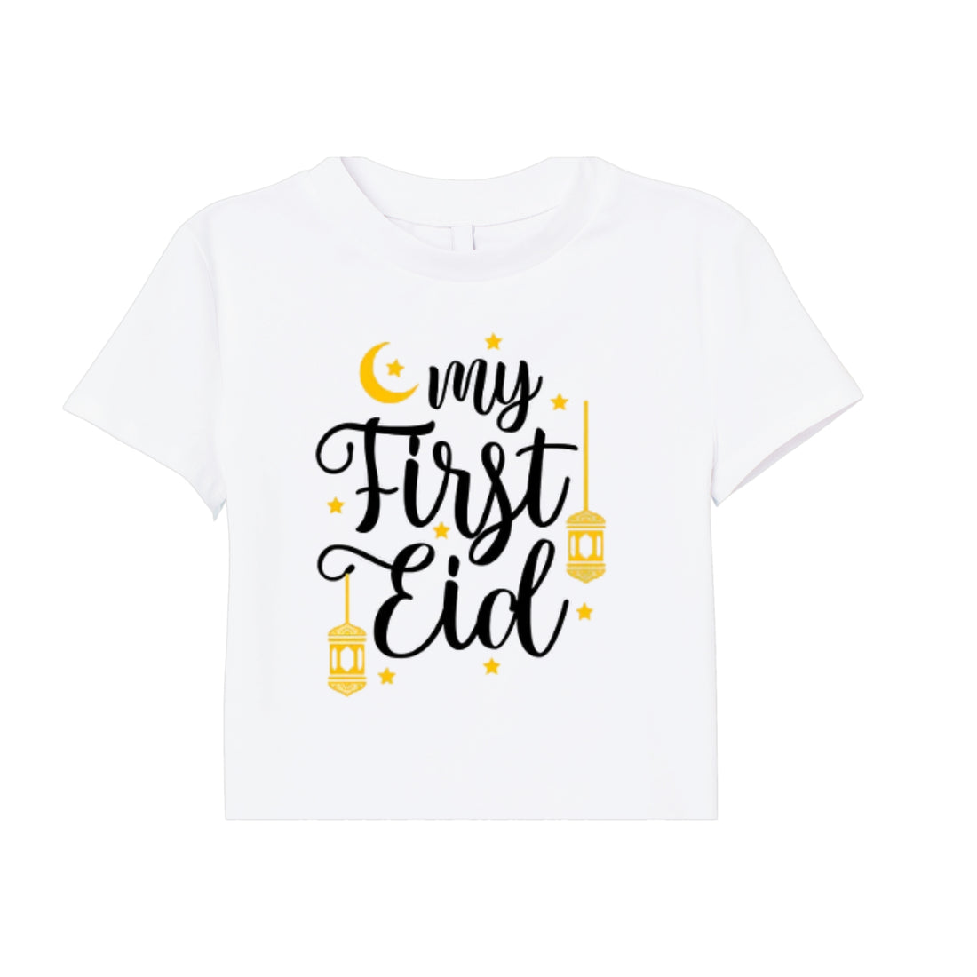 Itsmycostume My First Eid tshirt for kids baby boy girl infant Unisex Half Sleev Round Neck Tshirts