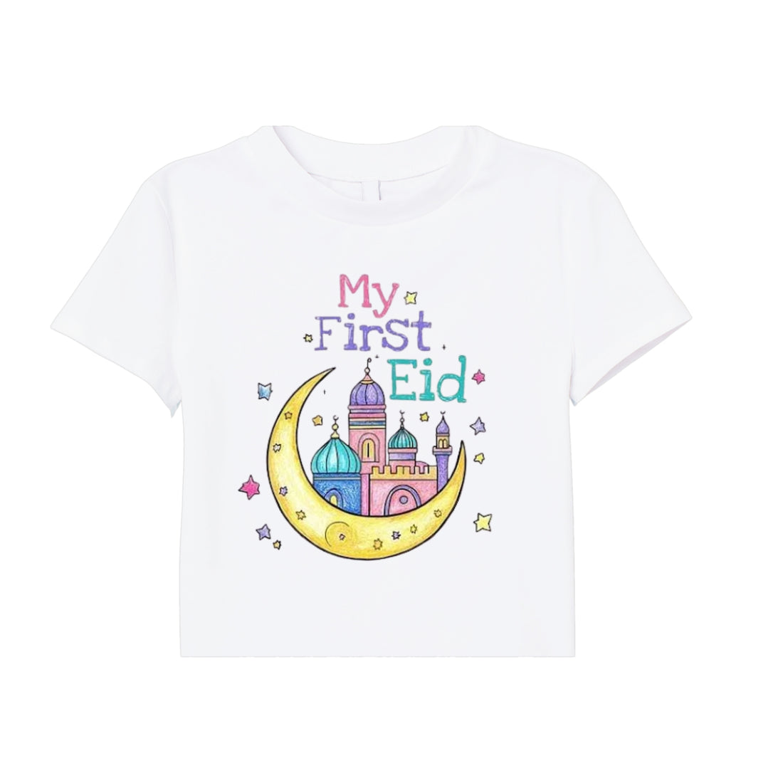 Itsmycostume My First Eid tshirt for kids baby girl infant Unisex Half Sleev Round Neck Tshirts