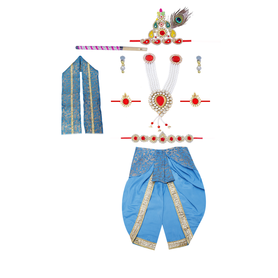 Krishna Dress for Baby Boy Kids Set of 10 Little Krishna Ji Kanha Janmasthmi Costume for Kids (IMC45001-Firozi)
