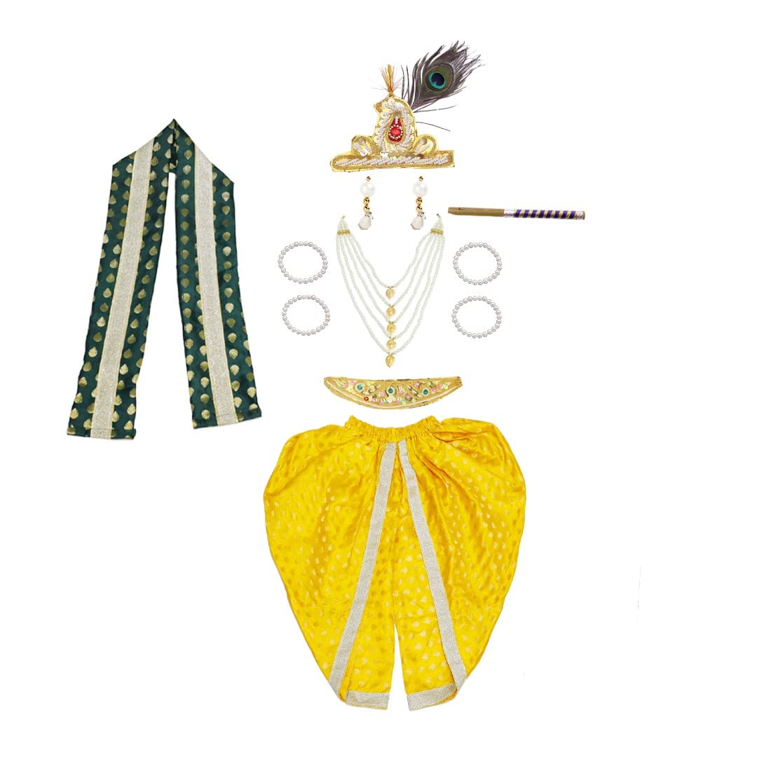 Krishna Dress for Baby Boy Kids Set of 10 Little Krishna Ji Kanha Janmasthmi Costume for Kids (IMC19000-YelGreen)