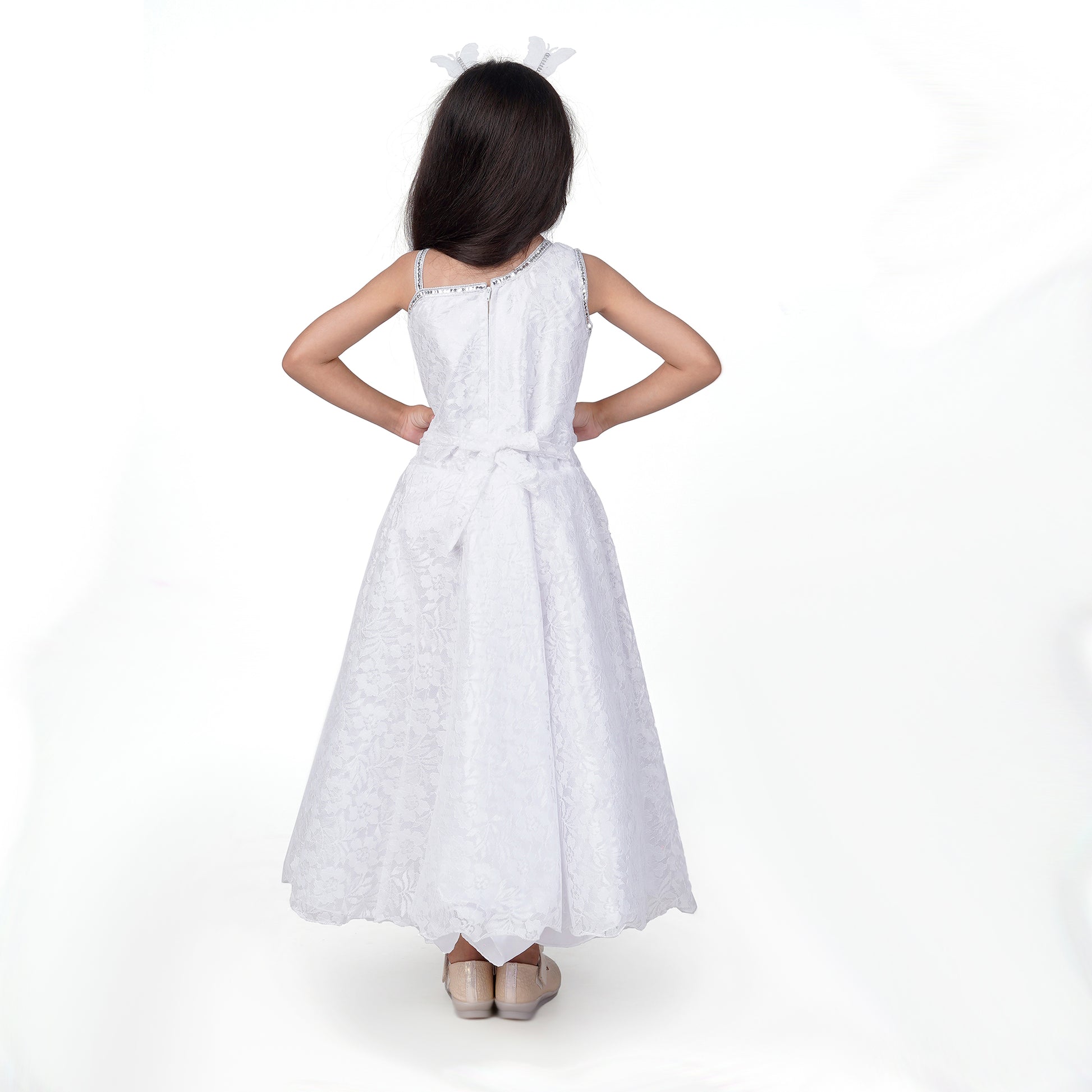 Itsmycostume Net Casual Full Length Cute Frill Fairy Frock Dress with Wings, Fairy Stick and Head Band for Girls Kids