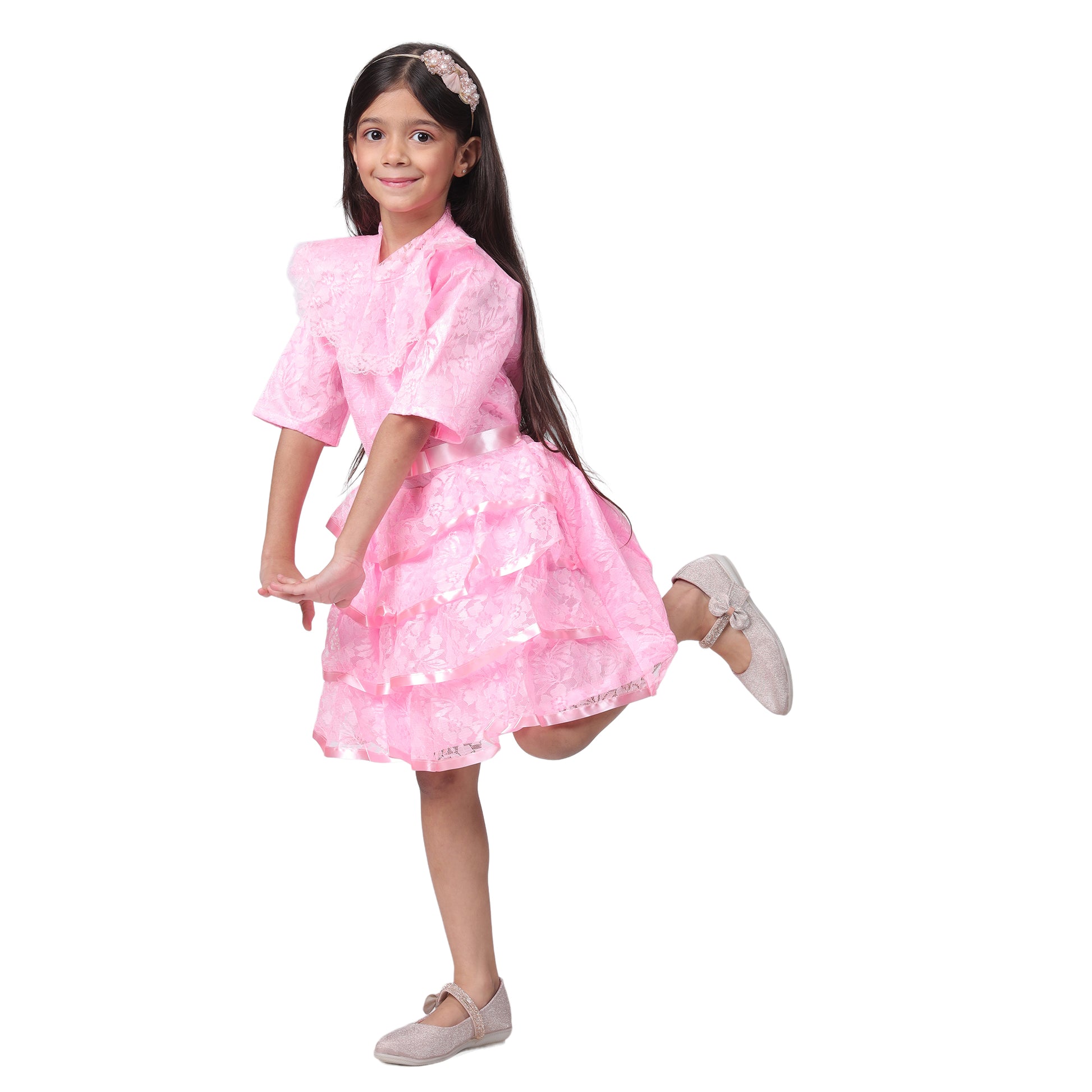 Itsmycostume Net Casual Knee Length Cute Frill Fairy Pink Frock Dress for Girls Kids