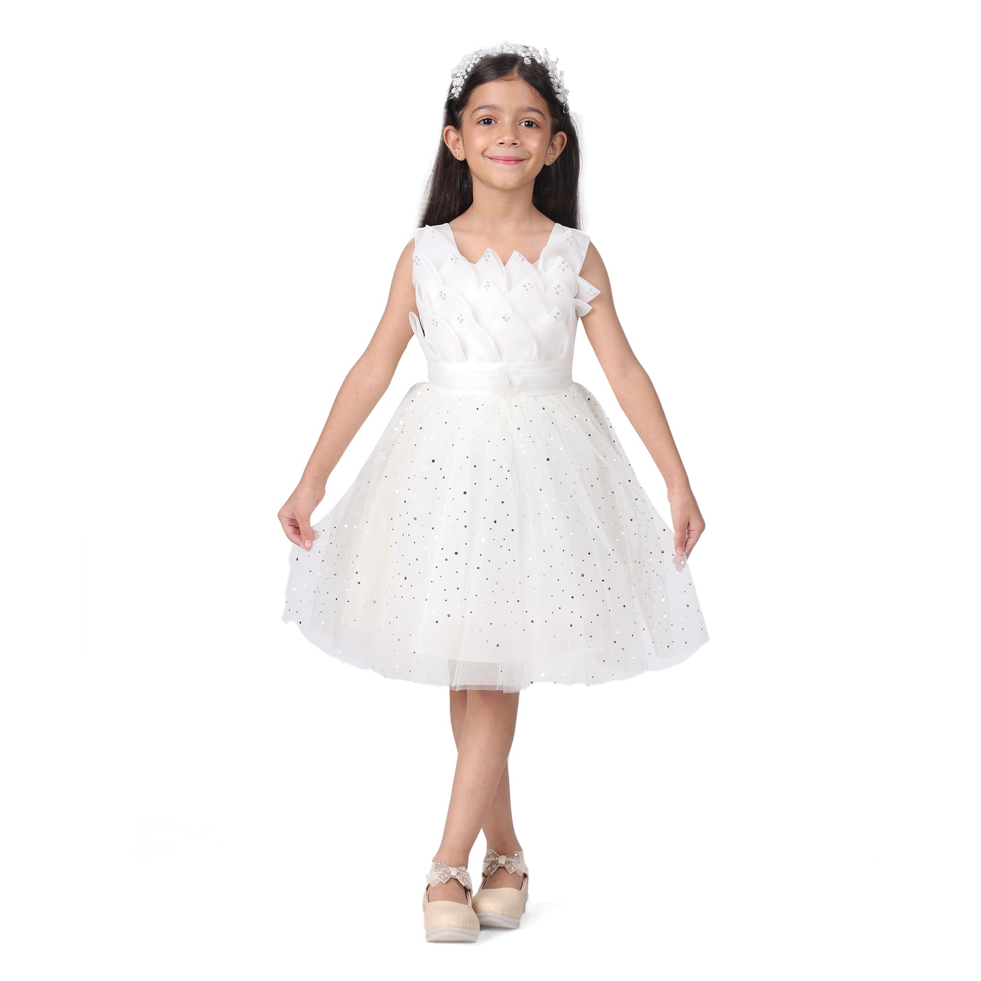 Itsmycostume Net Casual Knee Length Cute Frill White Frock Dress for Girls Kids