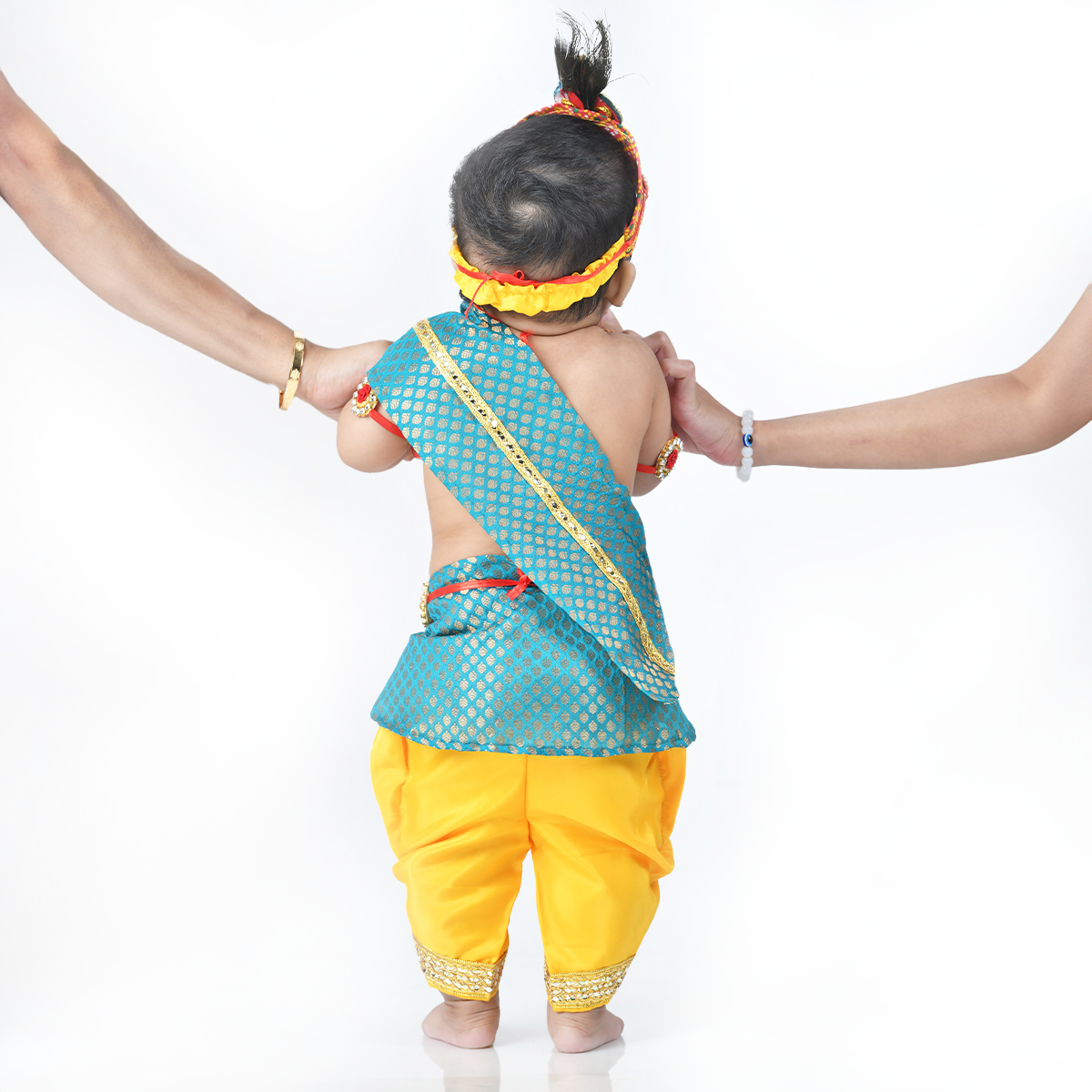 Krishna Dress for Baby Boy Kids Set of 10 Little Krishna Ji Kanha Janmasthmi Costume for Kids (IMC45001-YelRGreen)