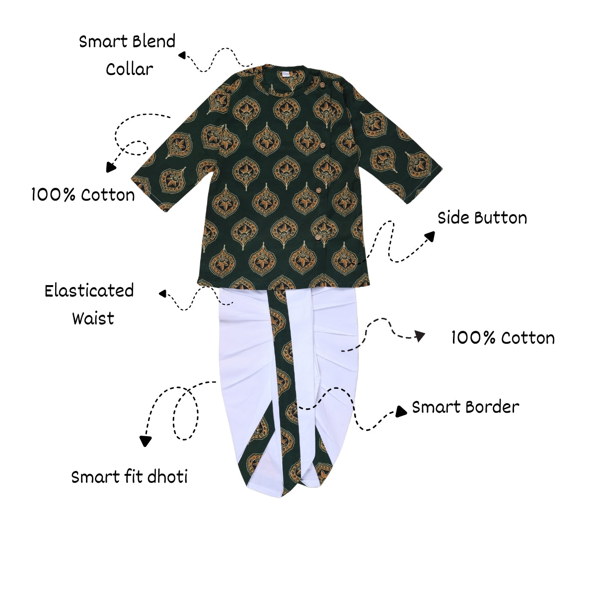 Vaanee Designz Elegant Traditional Dhoti Kurta Set for Baby Boys – Soft Cotton Ethnic Dress for Festivals And Weddings(Green)