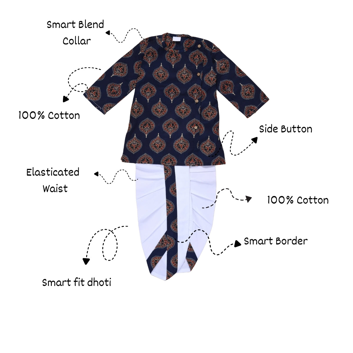 Vaanee Designz Elegant Traditional Dhoti Kurta Set for Baby Boys – Soft Cotton Ethnic Dress for Festivals And Weddings(Navy Blue)