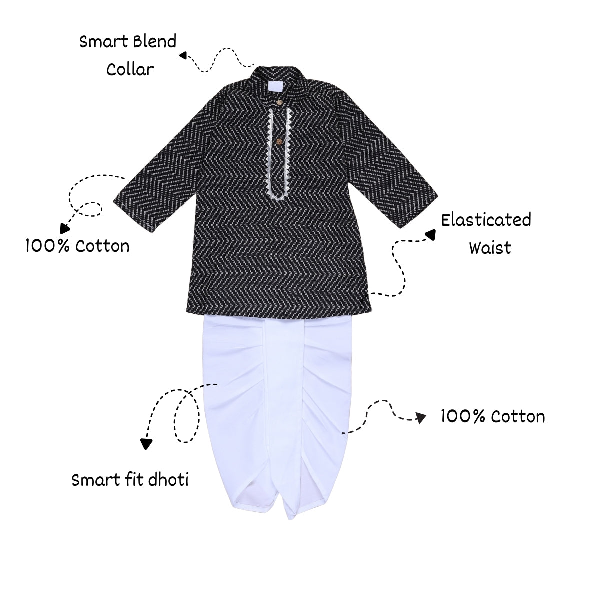 Vaanee Designz Elegant Traditional Dhoti Kurta Set for Baby Boys – Soft Cotton Ethnic Dress for Festivals And Weddings(Black)